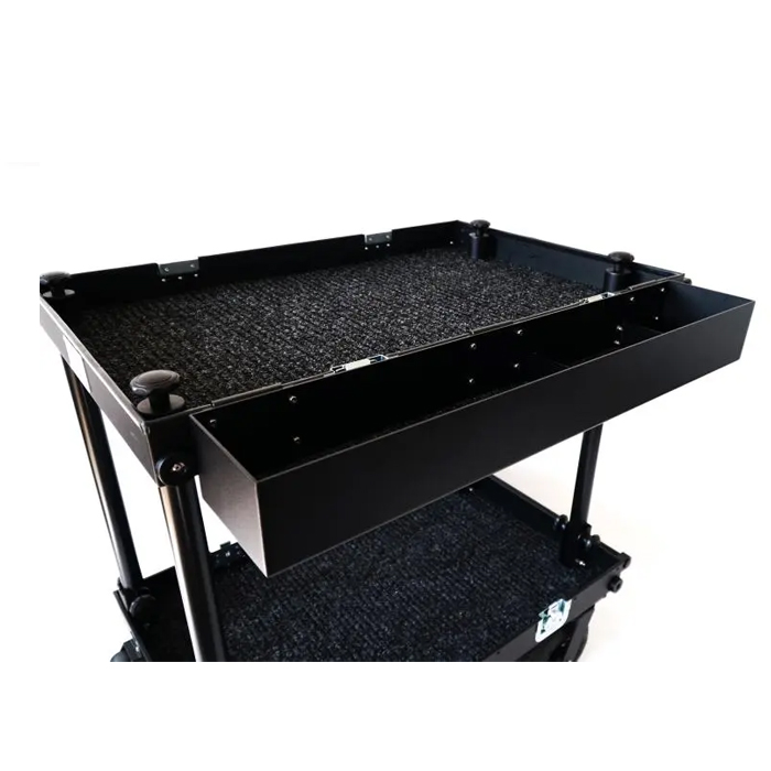The Adicam trough was designed to store smaller parts of equipment while extending your working space. Additional compartments give the possibility of even bigger organization and segregation of smaller elements. You do not need any tools to mount it, just put it on the edge of the top shelf. It must be hung on the longer side of the cart. Compatible with STANDARD and MAX models.