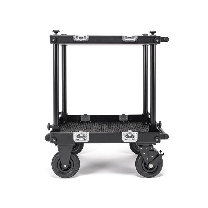Adicam MINI weighs barely 28.5 kg and allows to transport the equipment even five times heavier. This model has four hand-folded wheels (8″-fi200 mm) which are equipped with sealed bearings. Swivel wheels have been enriched with breaks which guarantees more stability in difficult conditions. Each deck has been covered with facing to prevent displacing of the equipment. The cart can be folded to small dimensions suitcase which can be easy carried by most of the cars. Assembly and disassembly takes only 2 minutes and is incredibly effortless. The wide list of the available accessories allows for a configuration by choice.