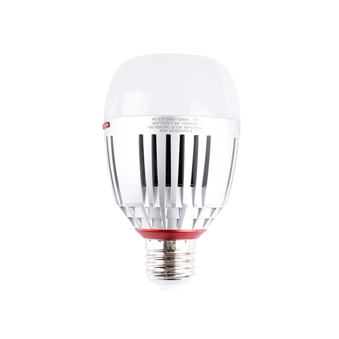 The B7c is also the first bulb designed for filmmakers to have a built-in battery, powering the B7c for over 70 minutes at full power, and over 20 hours as it approaches minimum brightness.
