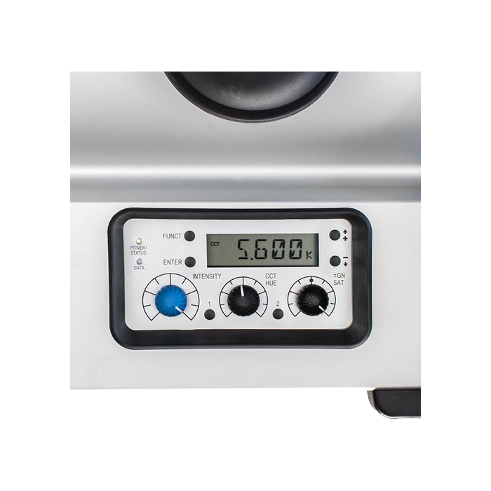 Color temperature, tint and hue can be continuously adjusted from 2,800 K to 10,000 K, between full plus or minus green and RGBW colors.
