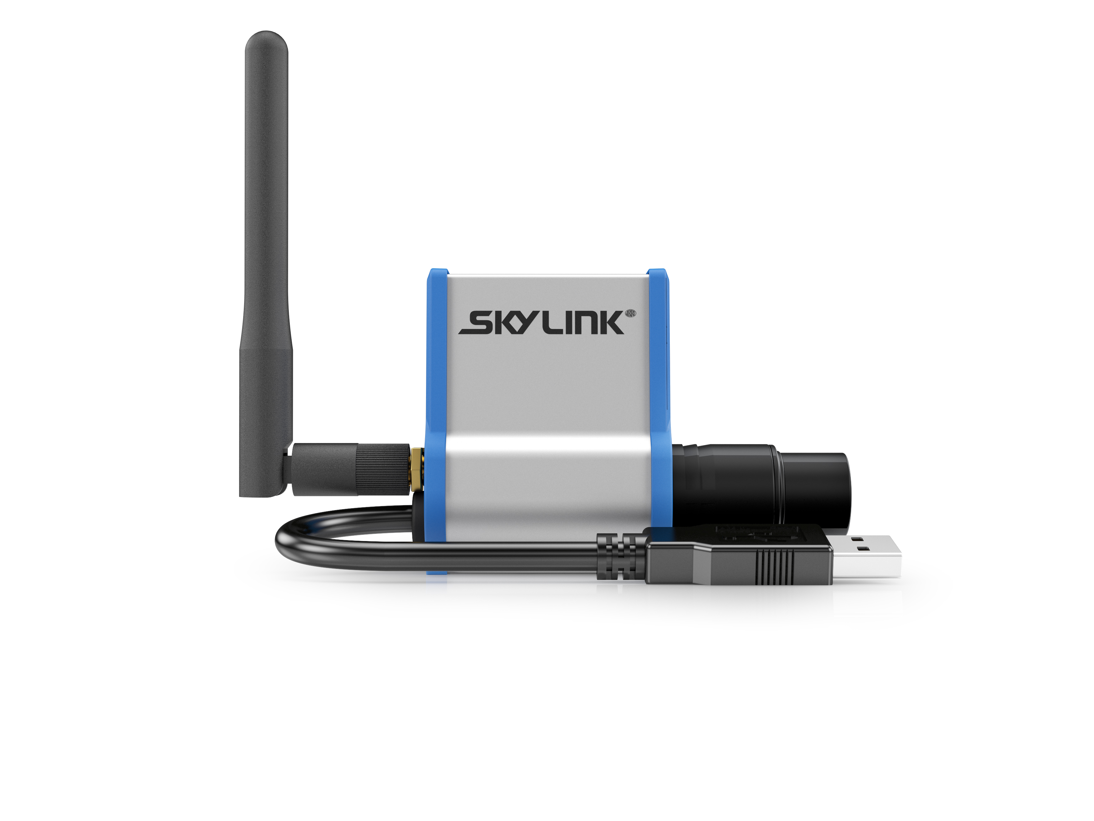ARRI and Innovative Dimmers have teamed up to create SkyLink: a two-part system that allows for wireless DMX and RDM communication to SkyPanels. The SkyLink Receiver and the SkyLink Base Station use LumenRadio for DMX/ RDM communication and a WiFi chip in the Base Station allows for direct control from a DMX control application on a tablet or computer. Setting up a control network has never been easier. The SkyLink Receiver plugs directly into the DMX port on the back of any SkyPanel and receives power from the USB port directly below the DMX.This compatibility allows for SkyLink to work with all SkyPanel models including the S30, S60, and S120, offering a wireless solution for the entire SkyPanel family. The new SkyPanel S360 already has Wireless DMX built in and works seamlessly with the SkyLink products.