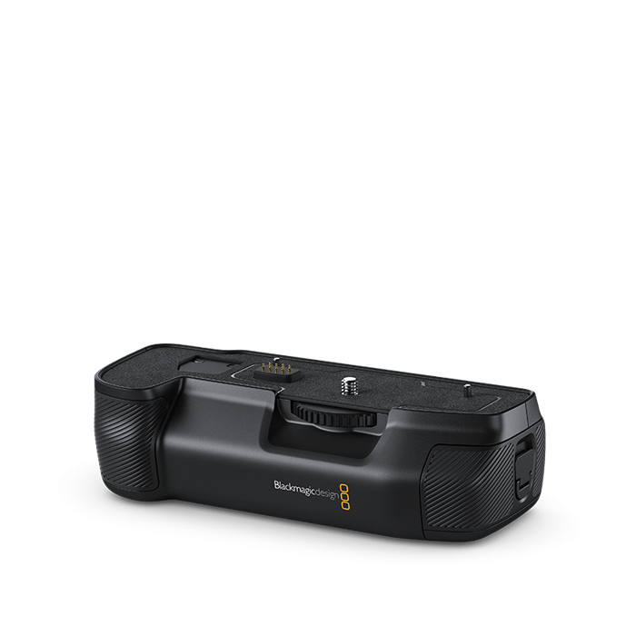 The Blackmagic Pocket Camera Battery Pro Grip adds two extra NP-F570 batteries to the 6K Pro / G2 for over 3 hours of shooting on a single charge. That’s a massive battery life, in a compact design that integrates seamlessly with the camera. Featuring a unique carbon fiber design, non‑slip hand grips, and a slide out tray, the battery grip makes long shoots easier because it gives you more to hold onto. You can view the status of the grip’s batteries on the touchscreen display, and charge the batteries via the camera’s 12V DC power connection in between takes.