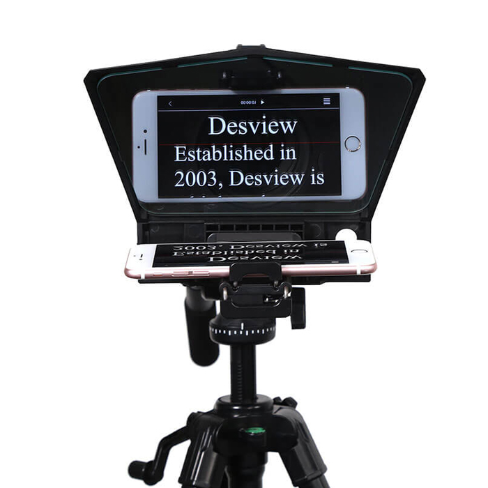 Desview T2-teleprompteren skal via App bruges med tablets, max. 8” eller smartphones som rulletekst enhed. Desuden er Desview T2 også kompatibel med smartphones som det optagende kamera ( placering og objektiv placering kan/skal finjusteres, beslag medfølger ). Den understøtter vertikal/horisontal placering af enheden og fotografering til venstre/højre afhængig af objektivets placering på smartphonen.