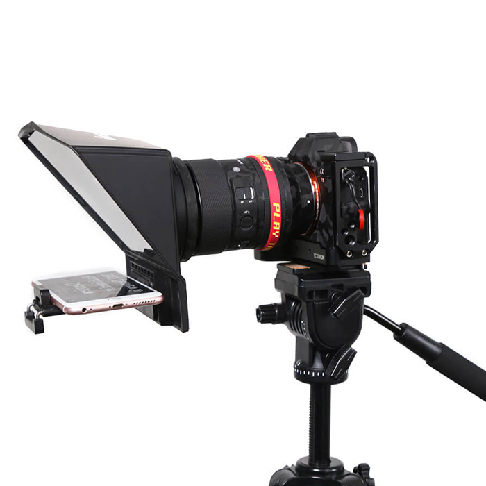 Desview T2 teleprompter lader dig tydeligt læse dit manuskript/rulletekst mens du kigger direkte ind i kameraet. Giver en professionel og sammenhængende præsentation som på TV