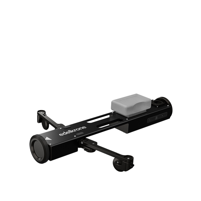 Edelkrone DollyPLUS is a motorized dolly to mobilize your camera and any tripod. Delivers straight or curved camera motions on flat surfaces + wirelessly connects to edelkrone motorized heads.