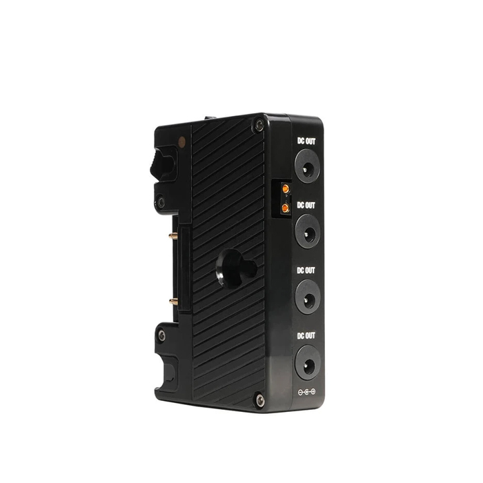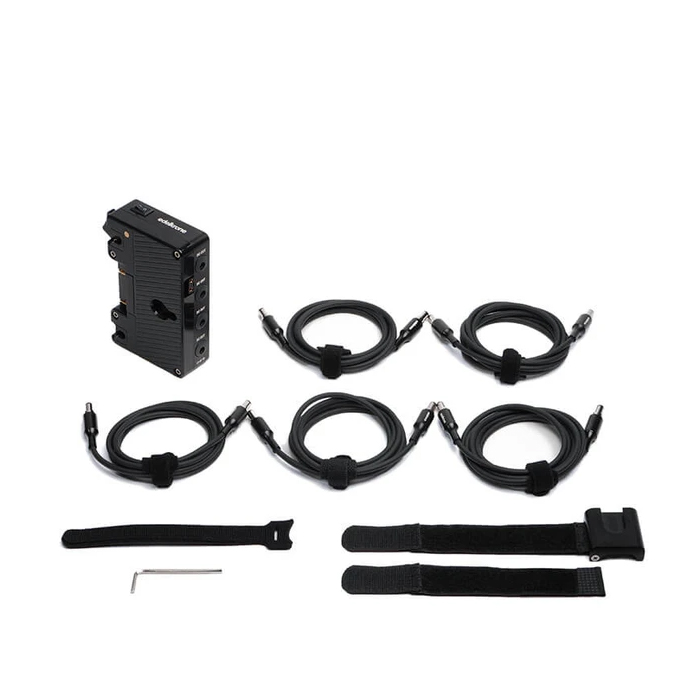 Power Module splits a V-Mount or Gold Mount battery output to four separate DC jacks. With the Power Module and DC to DC cables (x5 cables included in box), you can power up your entire edelkrone setup with a single, long-lasting battery. Batteries sold separately.