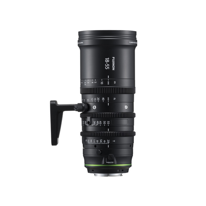 The Fujinon MK18-55mm T2.9 Lens in X-Mount is a lightweight cine-style zoom lens for X-mount cameras with a Super 35mm-sized sensor. It features a mechanical design with three independent lens control rings: focus, iris, and zoom. Each ring incorporates a cine-style gear with a 0.8 MOD for interfacing with standard cine -style lens accessories. The focus ring features approximately 200° of rotation, which provides room or precise focus pulls, and the iris is clickless, enabling smooth iris pulls. The lens also incorporates a macro mode for close focusing capabilities.