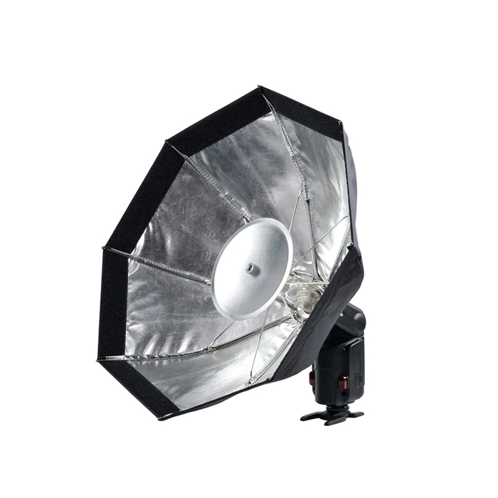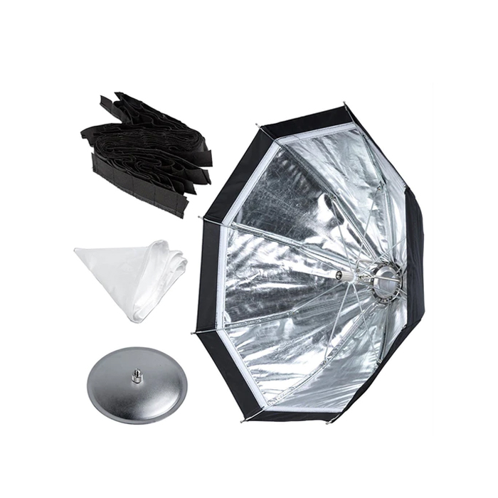 Portable softbox opens and folds up like an umbrella. Function as a diffused softbox, a beauty dish, or a gridded softbox. Help produce soft and even illumination, as well as attractive catchlight in the eyes.