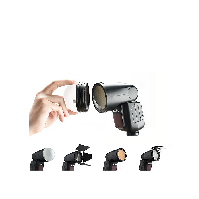 The Godox V1 TTL Li-ion flash has a round head to provide soft and even illumination, like studio units.