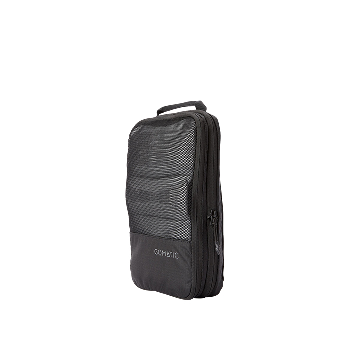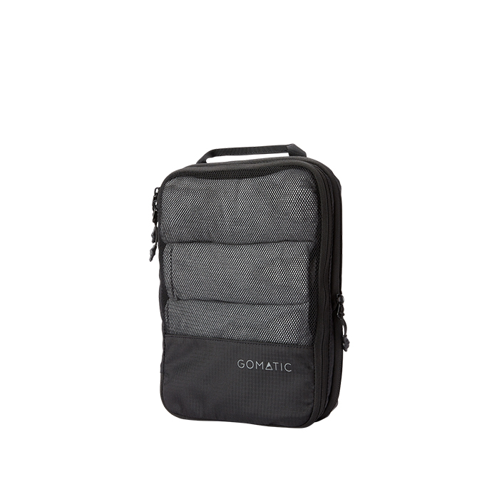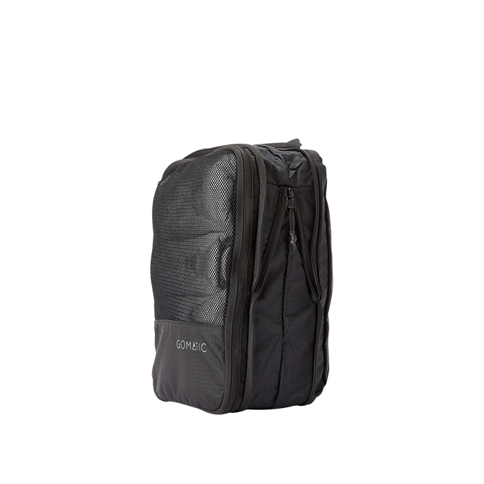 Gomatic Packing Cube V2 Medium har et kompressionssystem med lynlås, der sammenpresser dit tøj og maksimerer din plads med 50 procent. Tasken kan komprimeres fra 5,5 L til 2,5 L.