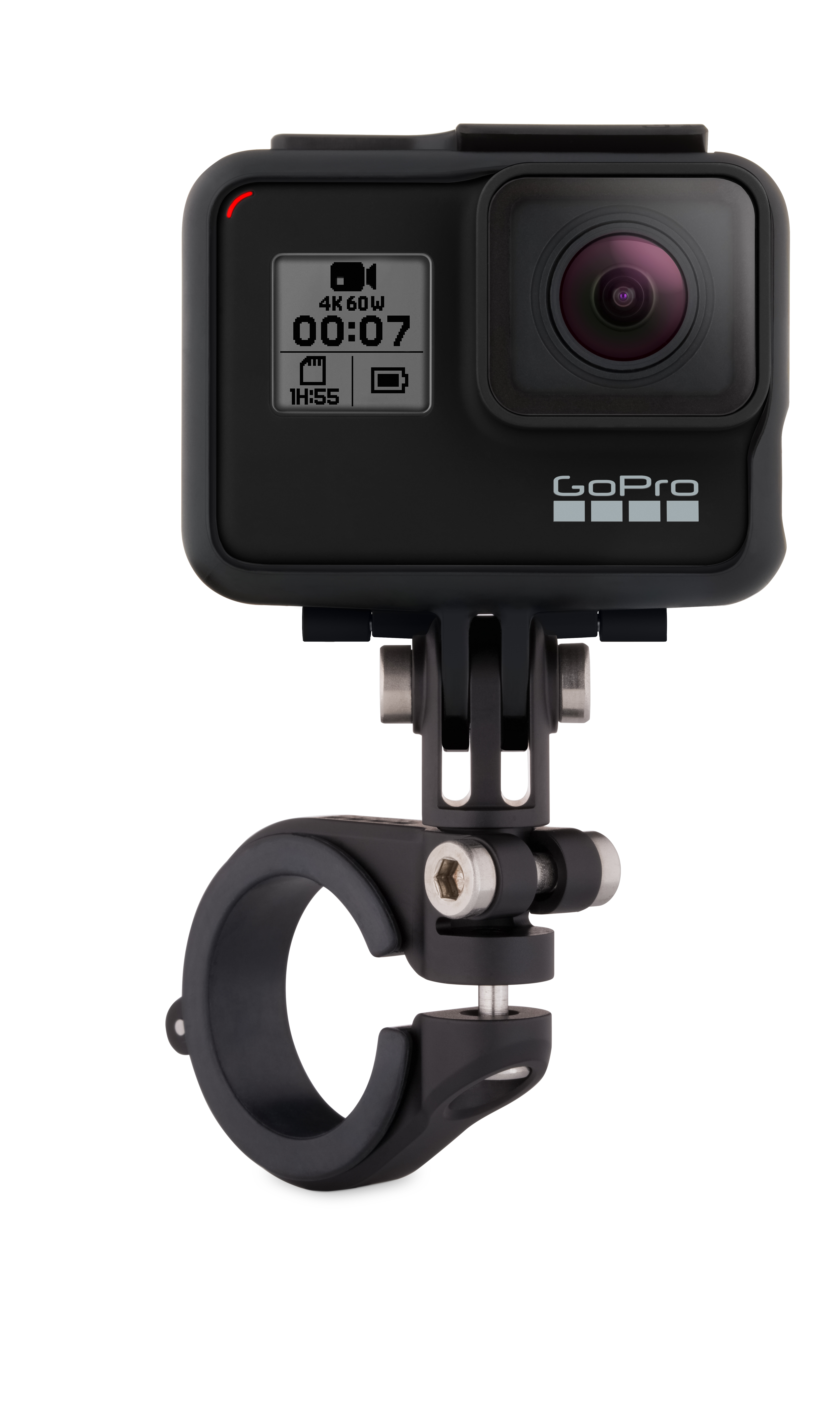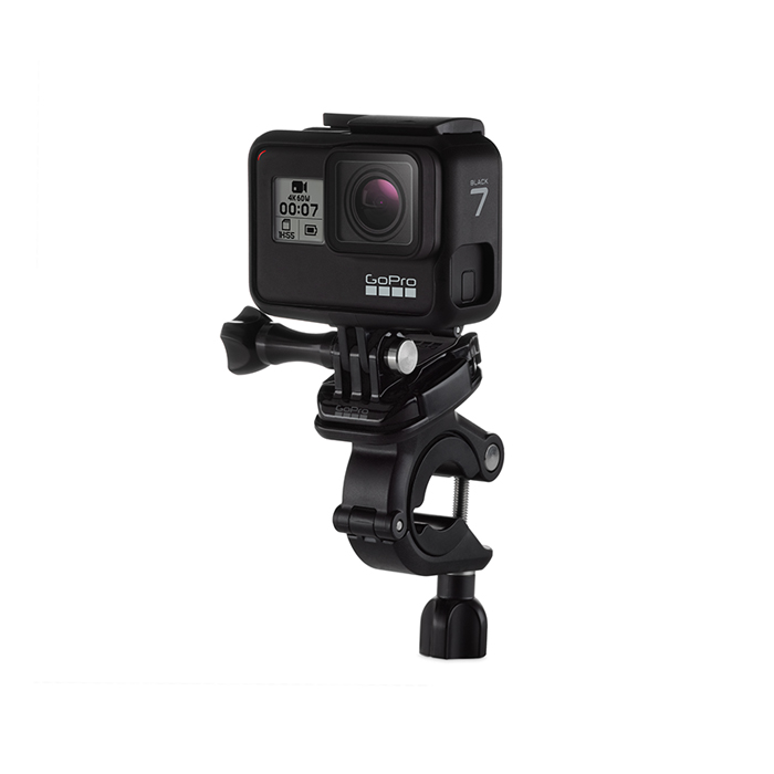 GoPro's Handlebar/Seatpost Pole Mount is a tube clamp for mounting your GoPro HERO camera onto your bike's seatpost or handlebar tube. Capture all the action while you ride from this on-bike mounting accessory. Instead of capturing the same helmet shot that everyone else gets, this lower point of view provides intense video that will impress you and your friends. The clamp also attaches to chainstays or or any other place on the bike that is in the clamp's range of 0.75-1.4". The clamp will clamp to virtually any pole that is within it's range, such as boom poles, small diameter pipes, windsurfing and kitesurfing control bars. The included orientation adjusting mount provide numerous position options.