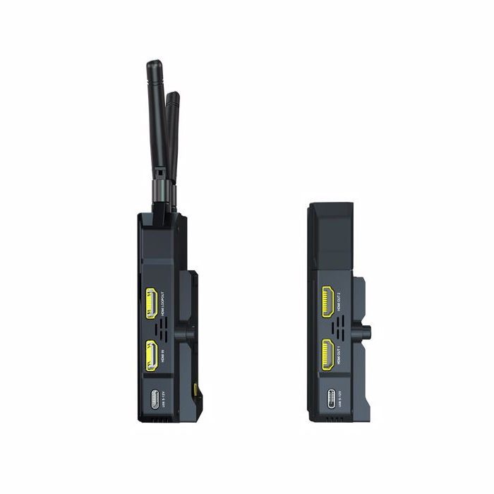 Få trådløs videooverførsel på op til 1080p60 på din stabilisator, dit systemkamera eller cine kamera med det lette trådløse Mars 300 PRO Enhanced HDMI-sæt fra Hollyland med trådløs videosender og -modtager. Enhanced-modellen har to udvendige antenner på senderen og en reserveantenne. Senderen har en enkelt HDMI-indgang og en HDMI-sløjfeudgang, der giver mulighed for visning på en integreret monitor. Modtageren har to HDMI-udgange. Senderens senderækkevidde i lige synslinje er op til 120m med ekstrem lav forsinkelse (Latency) op kun 0,1 sekund til modtageren og op til 90 m til app.