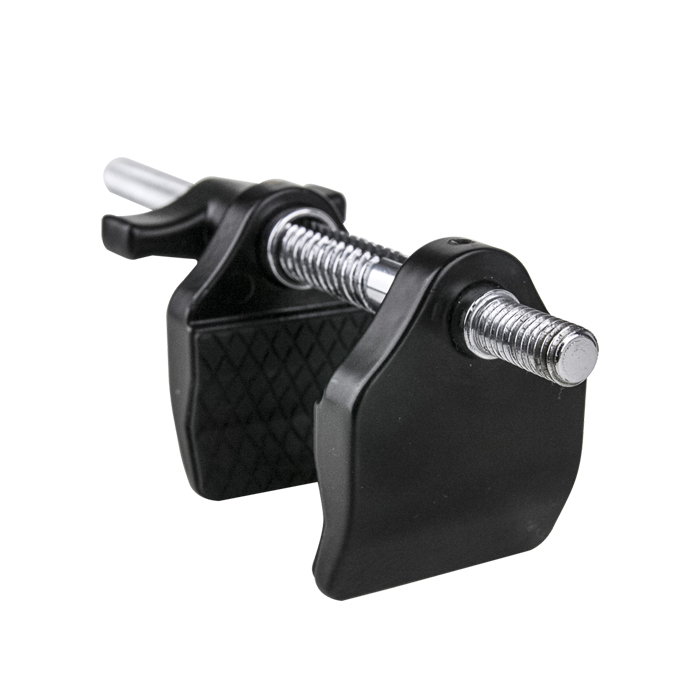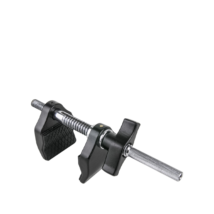 Miniversion af Super Viser Clamp med 1/4''-20 gevind med hungevind på 3/8" (10 mm), riflet stålstang og en 3/8''-16 hanstift i bunden af jaw til tilslutning med forskellige former for lys- og videotilbehør.