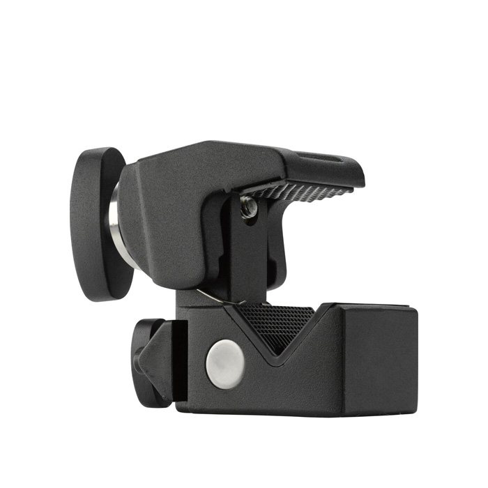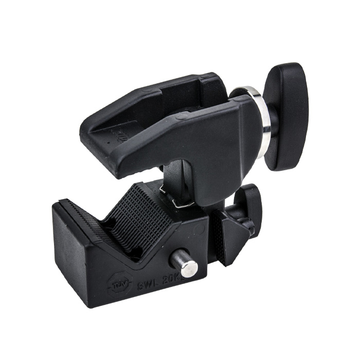 Convi Clamp er mere end blot en fantastisk clamp, det er grundlaget for et helt grip system. Convi Clamp, der er helt i metal, er fremstillet af en let legering, der kan tåle belastninger helt op til 20 kg. Den har en sekskantet receiver, der accepterer snesevis af Convi-tilbehør fra en simpel stift til den alsidige Max Arm til montering af næsten ethvert lysudstyrkamera eller tilbehør. Receiveren er udstyret med et sikkerhedssystem med fjederlåsning, der sikrer, at Convi-tilbehøret ikke løsnes fra clamp'en, hvis låseskruen løsnes uventet. Convi clamp har en jaw, der kan udvides fra 5-51 mm i diameter. Den har også en sikker montering på jævne overflader. Den kommer i et sort finish.