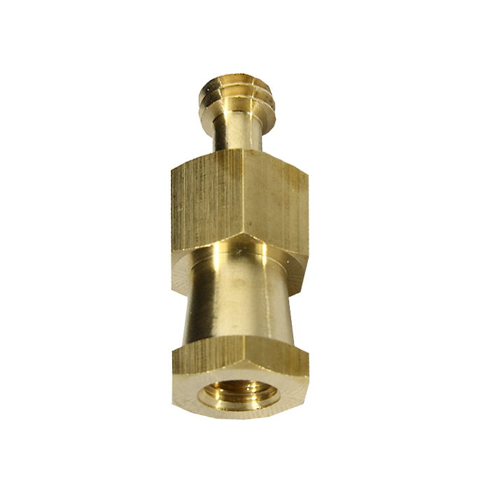 Hex Adapter er fremstillet af solid messing med 5/8" sekskant-adapter med 3/8''-16 hungevind og 1/4''-20 hangevind. Designet med sekskantet ende hvilket forhindrer uventet rotation.