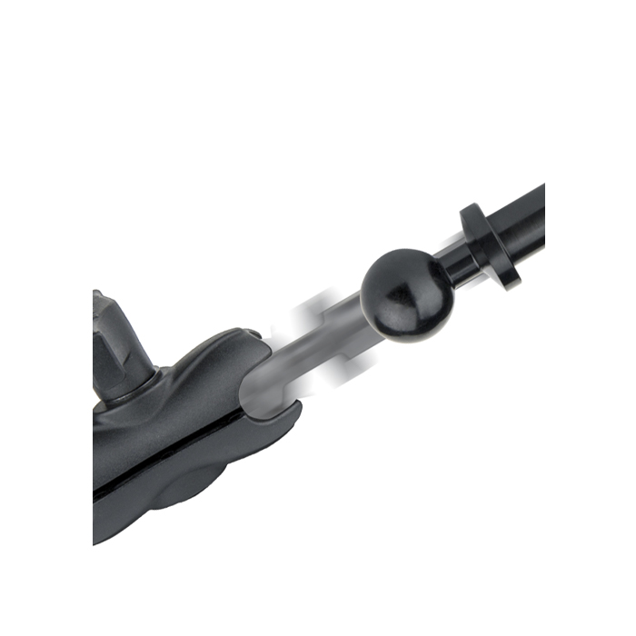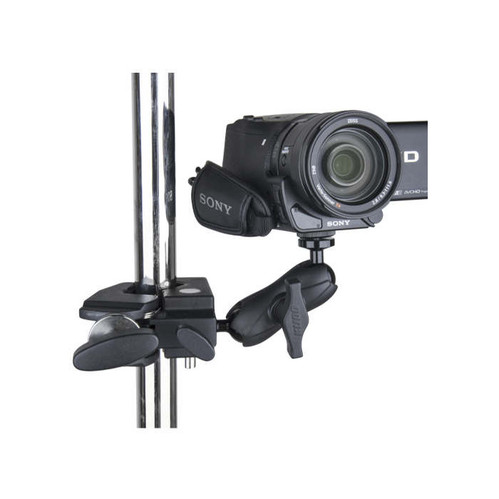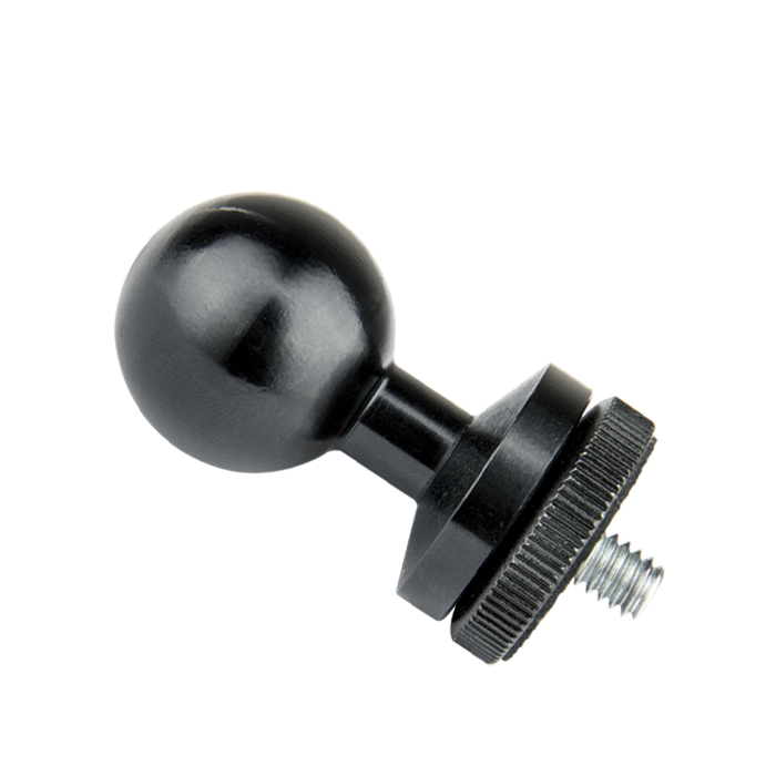 CNC aluminiumskugle ( dia. 26mm) med sort anodiseret finish. Den runde plade giver ekstra støtte og stabilitet til kameraer. Denne han-stud af stål med 1/4"-20 gevind passer til de fleste standardkameraer og videokameraer med hungevind, der findes på kameraets bund. Takket være fleksibiliteten i den aftagelige, riflede drejeknap til montering i forskellige dybder af 1/4''-20-hungevind kan alle kameraer og videokameraer holdes på plads let og bekvemmeligt.