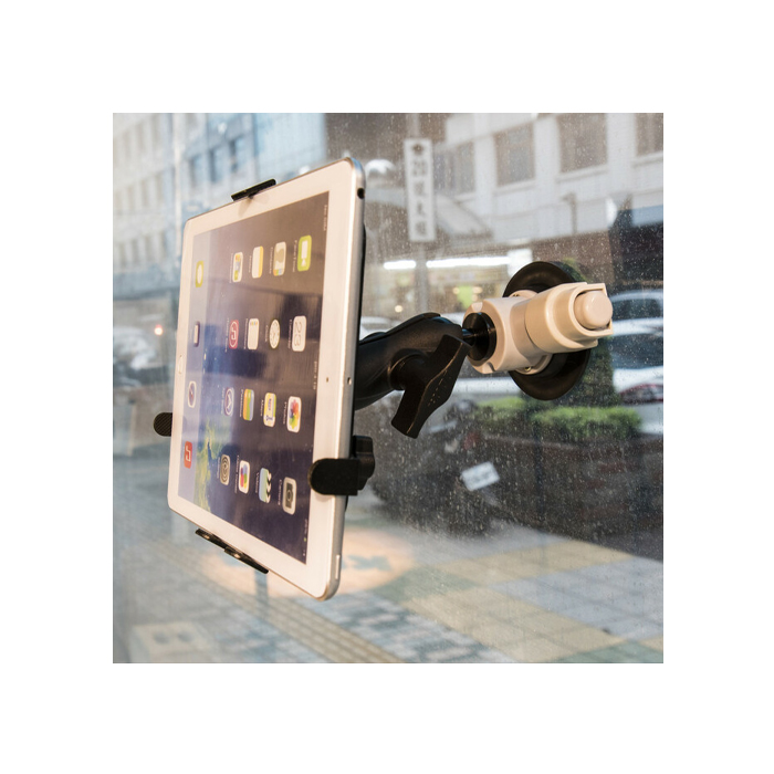 Super Knuckle Universal Tablet Holder er fremstillet af forstærket ABS-materiale, som gør den stærk og let, og leveres med gummibelagte aluminiumskroge, der kan justeres til ni forskellige positioner. Passer til næsten enhver størrelse tablet fra 7" til 11" på den ene side og et kugleled til Super Knuckle på den anden side.