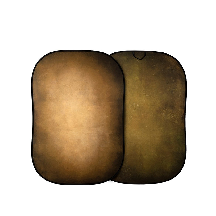 The Tobacco/Olive Vintage Collapsible Background is double sided, offering on the Tobacco surface a range of brown/ochre tones with a small hint of green whilst on the Olive surface a range of deep greens with a hint of ochre. Both surfaces also feature a dark vignette to the edges. Great for portraits, fashion and product photography, this versatile reversible background provides a very fashionable, timeless hand painted look that subtly complements the chosen subject. Two great backgrounds in one with a collapsible pop up construction that provides today’s creative imagemaker with a truly portable solution that can be easily transported to their chosen location.