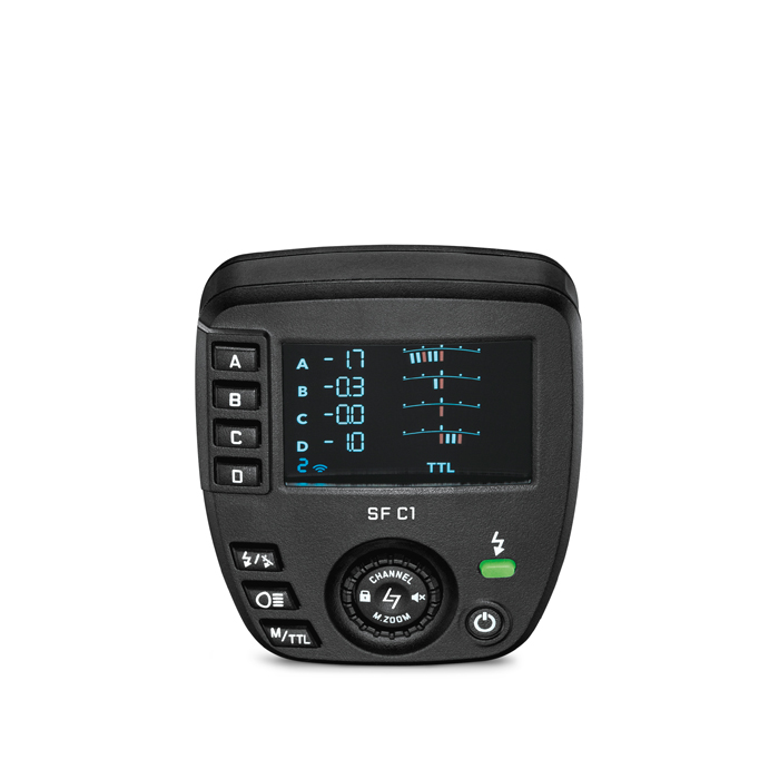 The Leica SF C1 remote control unit adds a multitude of creative options. It is mounted on the hot shoe of the camera and enables wireless remote control of SF 60 flash units in the 2.4-GHz frequency band. The flash units can be organised in up to seven channels, each with three groups, and controlled either together or separately with the same or different settings.