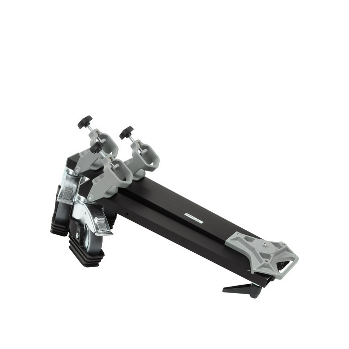 Dolly til anvendelse på store stativer, konstrueret til at modstå høje belastninger. 127mm hjul som kan låses manuelt. Manfrotto 114 kan foldes for nemmere transport og opbevaring.