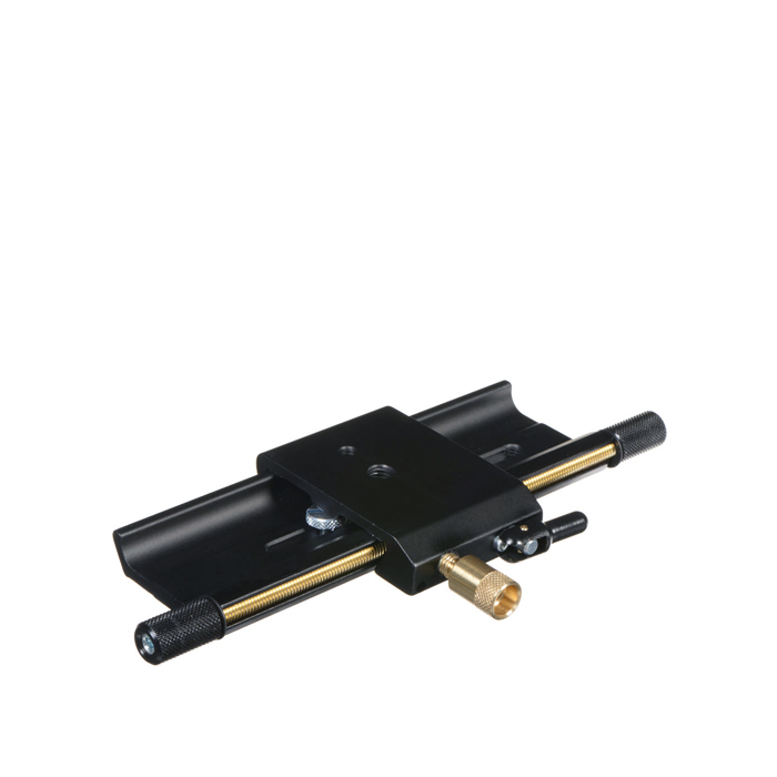 Ideel til makrofotografering og affotograferinger, hvor millimeters korrektioner kan gøre en stor forskel. Med Manfrotto 454 kan du med stor præcision kan indstille og positionere kameraet ved hjælp af skruen på siden af pladen. Pladen har et quick release system der gør det hurtigt at sætte op og afmontere kamera igen, når opgaven er fuldført. Totaltt kan Manfrotto 454 positioneres over 120mm fremad/bagud. Konstrueret robust i aluminium og med både 1/4"-20 og 3/8" skrue til montering på stativ og kamera.