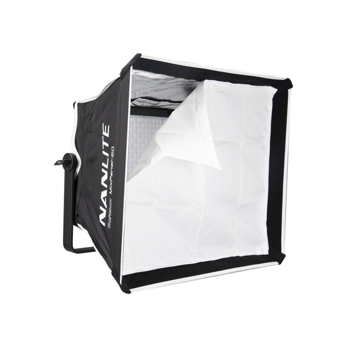 Nanlite Mixpanel 60 softboxen fjerner hårdheden af lyskilden og reducerer samtidig tabet af lys med en refleksive sølv inderside.