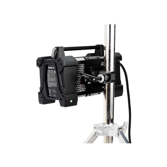 Quickrelease klemme med hurtig frigørelse og offset Yoke er standard. Holder strømforsyningen fast på lampestativ og truss, og letter hurtig udskiftning af lampehoved.