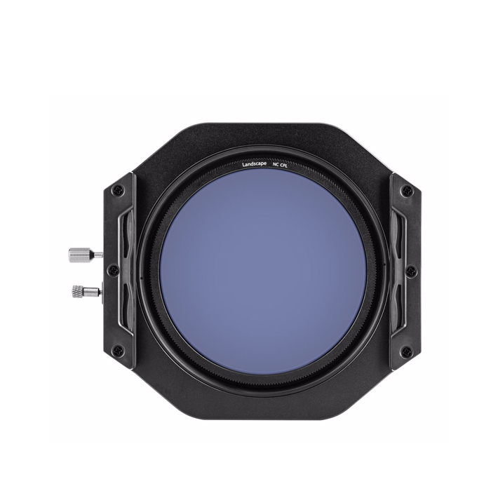 Særdeles velbygget filterholder i metal, der kan rumme op til tre 100mm kvadratiske filtre og et medfølgende rundt polarisationsfilter ”Landscape” til at give højere farvemætning. Leveres med adapterringe og en opbevaringstaske.