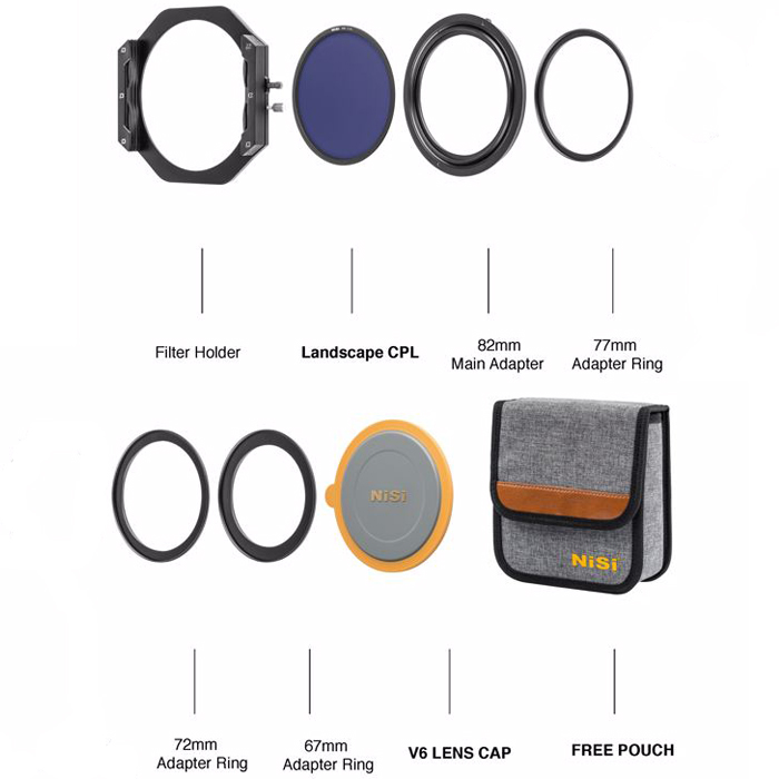 Dette kit indeholder NiSi’s ultra-tynde 86 mm Landscape polarisationsfilter (CPL), der har en kraftigere polarisationseffekt og giver endnu højere farvemætning og en mere blå himmel. Der medfølger også 4 adapterringe til de mest almindelige filterdiametre (67mm, 72mm, 77mm og 82mm) samt en praktisk, opbevaringstaske og et NiSi V6 objektivdæksel.