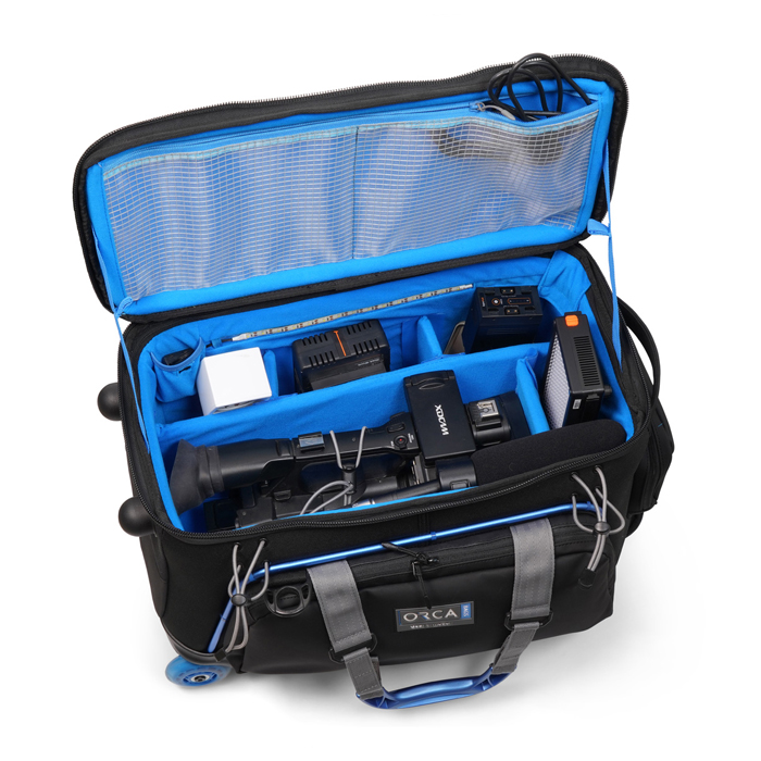 Videotasken Orca OR-10 kan rulles fra studio til optagelsesstedet eller hvor du nu vælger at optage. Dine kameraer og andet tilbehør er godt beskyttet af en ekstern aluminiumramme, intern honeycomb-ramme, skumlag og EVA. Udover at rulle, kan tasken også bæres med en skulderrem.