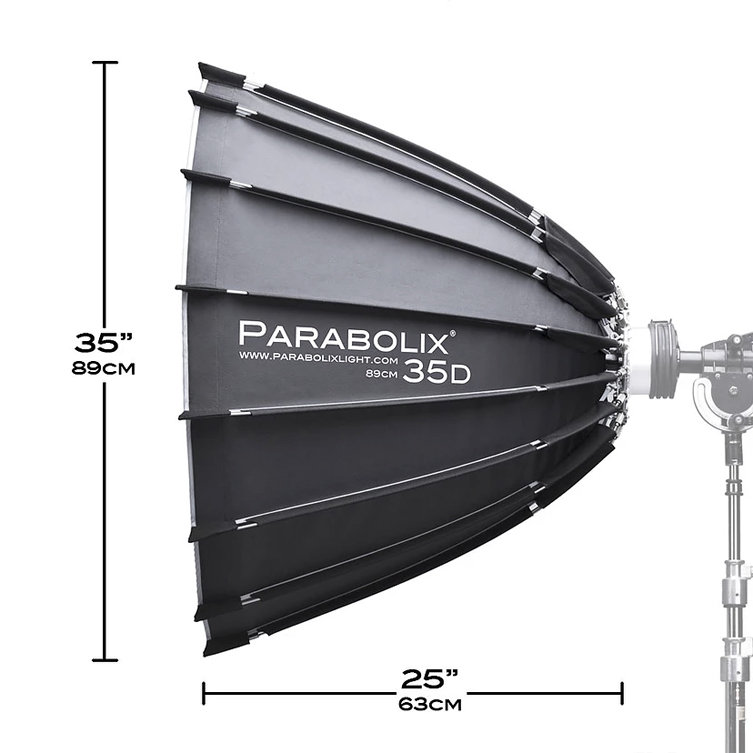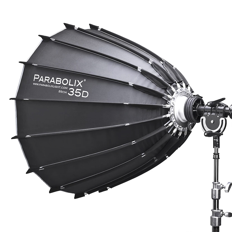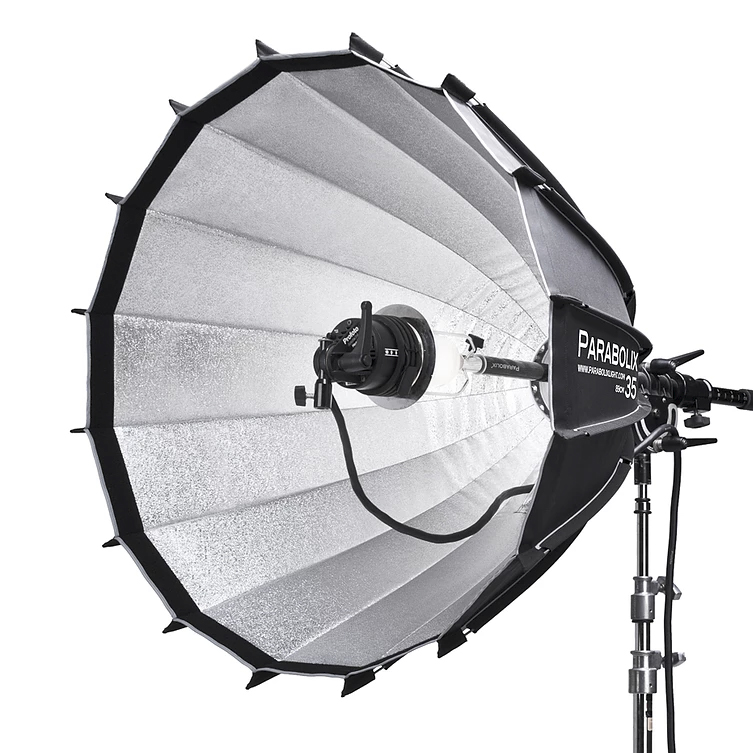 The Parabolix 35D reflector is our latest reflector size. At63 cm deep, it's the perfect mid-size reflector, ideal for editorial and fashion. Because it is deeper than our standard 35" reflector, it offers a softer light overall, with more lighting variations between fully focused and fully flooded.