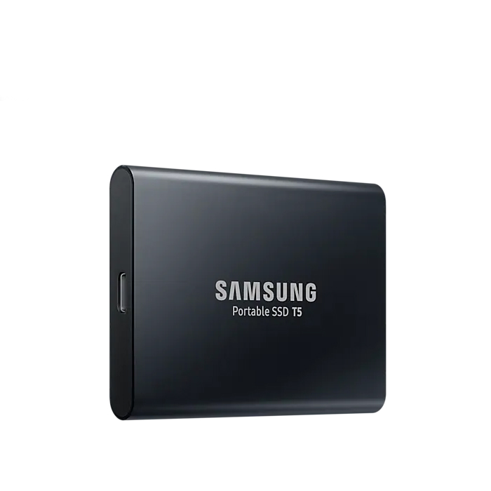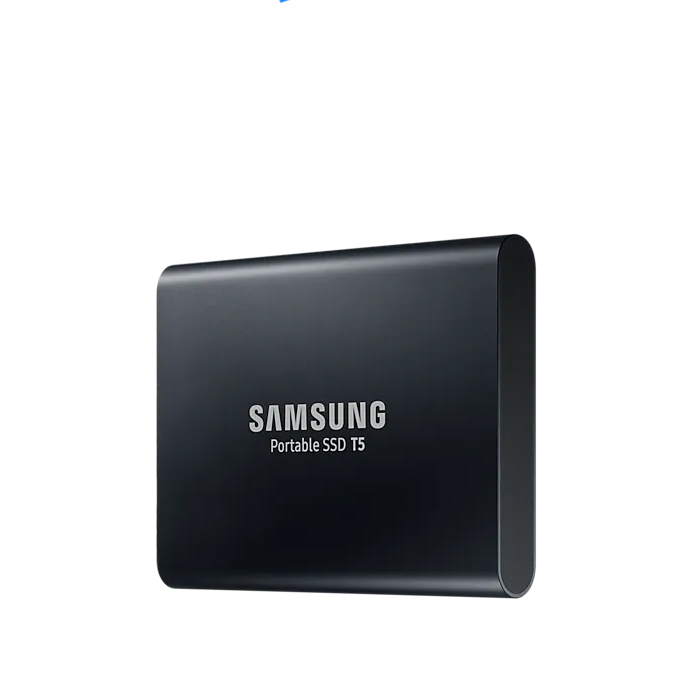 Samsung Portable SSD T5 løfter hastighederne for dataoverførsel til næste niveau og giver en helt ny oplevelse, når det gælder ekstern opbevaring. Det kompakte og robuste design og beskyttelse af adgangskode gør T5 utrolig nem at bære og opbevare data sikkert i.