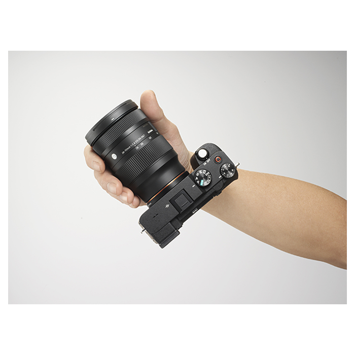 Being slightly less wide-angle than the 24-70mm F2.8 DG DN | Art has allowed a significant reduction in the size of the 28-70mm F2.8 DG DN | Contemporary lens body. In order to fit with the design concept of the Contemporary line, which balances performance with portability, the new lens features a simpler dust- and splash-proof structure and smaller switches. The new lens features just one lightweight focusing element, which keeps the AF unit small. This, along with a quiet and fast stepping motor, makes for responsive and near-silent autofocus performance.
