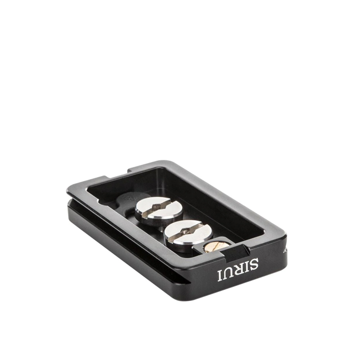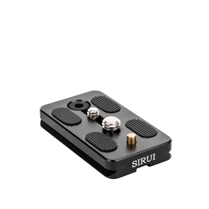 This quick release plate from SIRUI has a 1/4 inch as well as a 3/8 inch threaded screw, a rubberized surface as well as a video pin. The screws can be removed as needed via a rubber plug The SIRUI quick release plate is compatible with the Arca Swiss quick release system. It also comes standard with the SIRUI VA-5 video head.