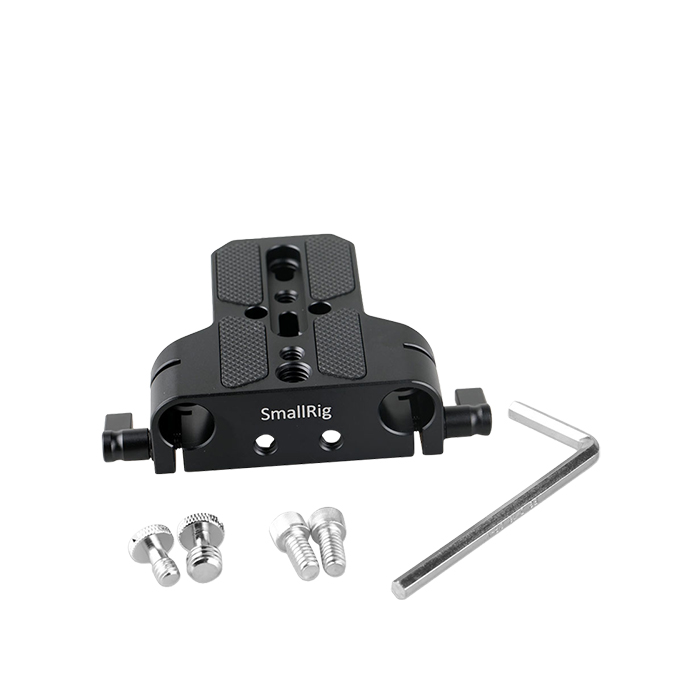 SmallRig Baseplate with Dual 15mm Rod Clamp 1674 is a simple and light base plate for the current popular cameras, such as Sony FS7, Sony A7 series, Canon C100 / C300 / C500 etc.. It attaches to a camera with a 3/8"-16 or 1/4"-20 screw. The base plate features 15mm diameter and 60mm spaced rod holes that allows you to mount a follow focus, matte box, lens support or other accessories. It is specifically designed to keep the weight down and let the operator use the FS7's inbuilt shoulder pad, minimizing the amount of extra weight and gear needed for a rig. With 1/4''-20 & 3/8''-16 threads on bottom, this base plate can be attached to any tripod.