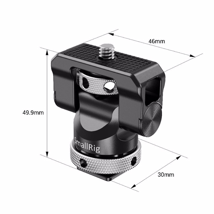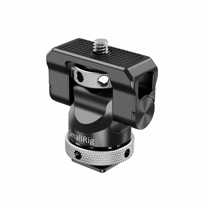 SmallRig Swivel and Tilt Monitor Mount with Cold Shoe BSE2346 is designed to hold your monitor onto the top of a camera or other mounting gears via the cold shoe adapter. The holder enables cameramen to swivel 360° sideways and tilt 140° so that they can hold a monitor onto any position without using tools. The robust mount is CNC-Machined aluminum and can support 5” or 7” monitor up to 1.2kg. At the top of the monitor mount features a rubber pad to protect your monitor or light from scratch. The size of the thumbscrew head is increased so that it’s easy to install. Both thumbscrews feature holes for hex spanner to ensure your monitor safe.