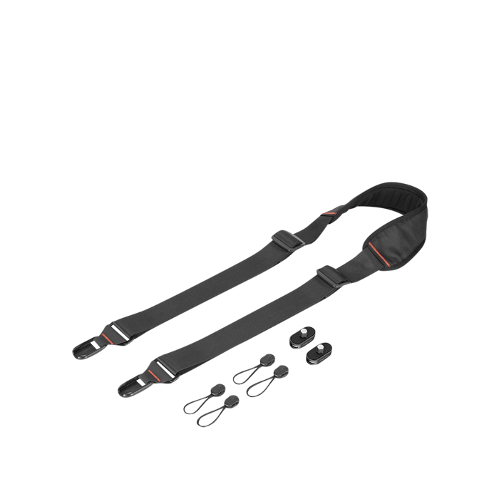 It can be worn as a sling, neck or shoulder strap. The strap features a dual-layer nylon webbing, and an ergonomic shoulder pad filled with memory foam which is thermo-compression formatted, helps relieve the pressures and pains on your shoulder and neck caused by longtime shooting and brings more comfortable carrying experience. The strap length is adjustable, the maximum length is 160cm and the minimum length is 110cm, to fit people with different sizes.