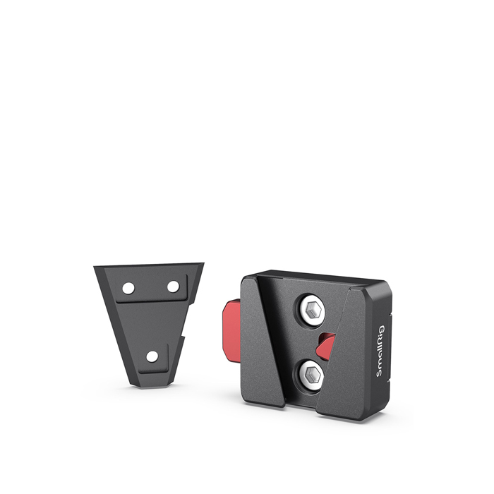SmallRig Mini V-Lock Assembly Kit MD2801 is a quick release set based on the standard V-Lock. It comes with a Female V-Dock and a Male V-Lock. There are 2 1/4-20 mounting holes on the Female V-Dock, and you can attach this assembly directly to a SmallRig camera cage kit, SmallRig monitor frame, or SmallRig shoulder pad mount. In addition, you can mount this assembly kit to SmallRig battery hinge MD2802 which is designed for adjusting the angle of the battery with this setup to power all the accessories, which minimizes camera weight. The V-Lock with three M3 holes can be used as a replacement of the original V-Lock comes with the V-Mount battery.