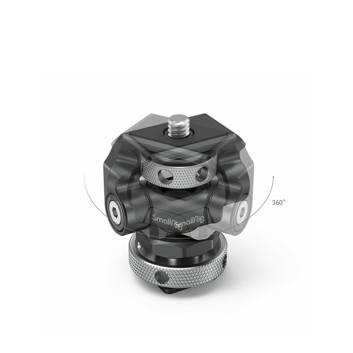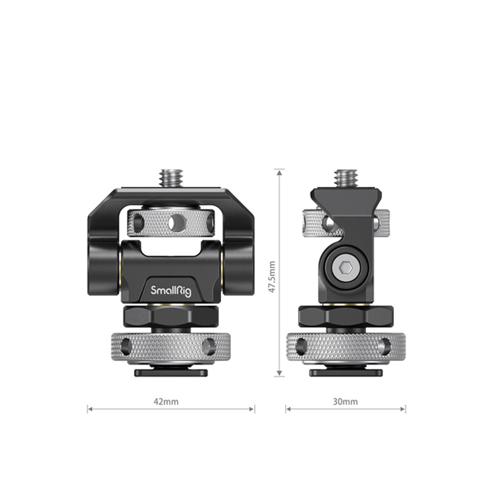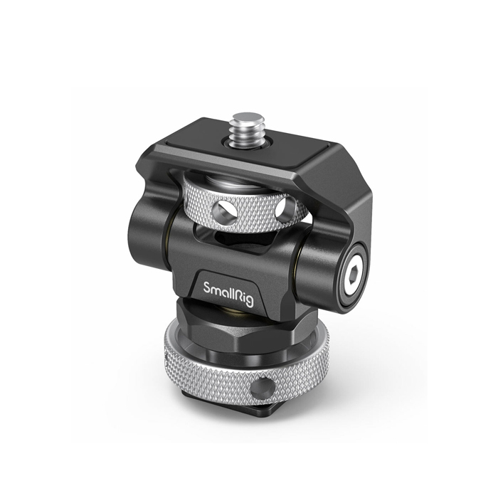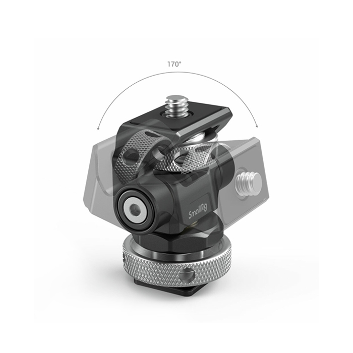 SmallRig Swivel and Tilt Adjustable Monitor Mount with Cold Shoe Mount 2905 is designed to hold your monitor onto the top of the camera or other mounting system via cold shoe adapter. It features 1/4”-20 screw on the top for monitor, light, or microphone. The holder enables to swivel 360° sideways and tilts 170° with a free stop in any position. The tightness of each axis is adjustable via the Allen wrench. The robust mount is CNC-Machined Aluminum and can support 5” and 7” monitor up to 1.5kg. The swivel and tilt mount has protective rubber padding on top and includes an Allen wrench for tightening the mounts for further security.