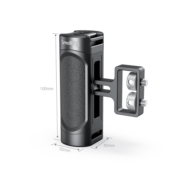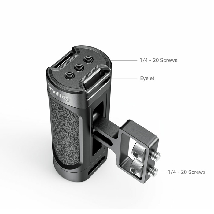 The SmallRig Mini Side Handle (1/4”-20 Screws) 2916 is designed for mirrorless, digital camera, and other small cameras. Two 1/4”-20 screws are fixed to the side of the Cage.