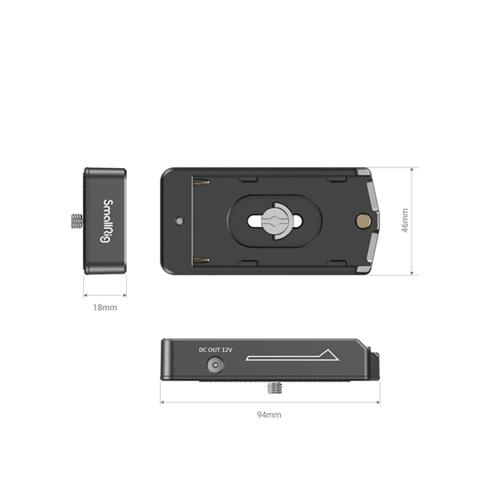 SmallRig NP-F Battery Adapter Plate Lite 3018 is designed to provide greater battery life for your camera rig via a Sony NP-F battery. It provides different output ports, including a 12V DC (5.5/2.5mm) output port and a 7.4V DC (5.5/2.1mm) output port. It features an LED indicator that will turn red when the battery level is less than 30 percent. When the indicator flashes, it means the battery level is less than 10 percent, and you need to replace the battery. The plate features a rubber pad on the bottom for a more stable installation.