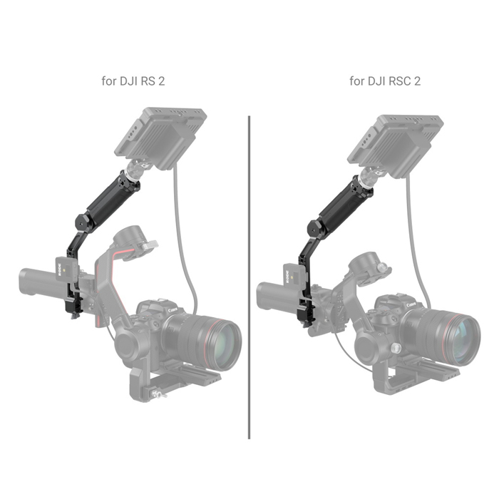 Features 1/4”-20 thread with locating holes which is compatible with DJI RS 2 original smartphone mount. The handgrip comes with a cold shoe mount on the top allows for attaching the Monitor Mount 2905, and the connection part features a cold shoe mount for attaching wireless go or sound receiver. The angle of the handgrip can be adjusted up to 180° via a ratchet knob and can be used as a side handgrip to meet the needs of different shooting scenarios.