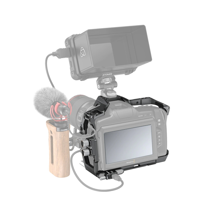 The SmallRig 3298 for BMPCC 6K PRO provides a rugged aluminum-alloy rabbit cage with multiple 1/4"-20 threaded holes that support additional camera accessories.