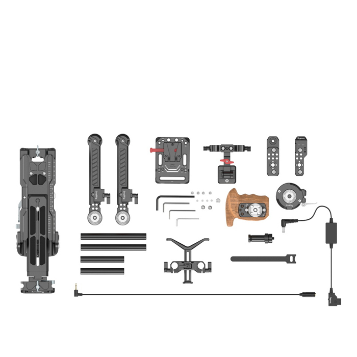 SmallRig Sony FX6 Shoulder Kit 3459 includes: Extension Arm 1870, 15mm Rods 1049 and 1050, Shoulder Pad 2837, Top Plate 3186, LCD Screen Adapter 1831, Grip 1891, V Mount Battery Plate 2991, D-Tap Power Cable 2932, Lens Support 2681.