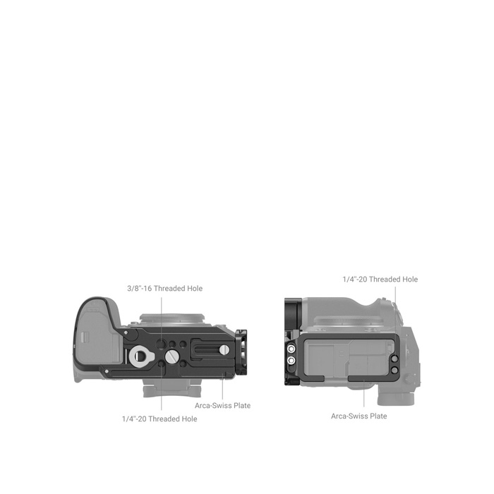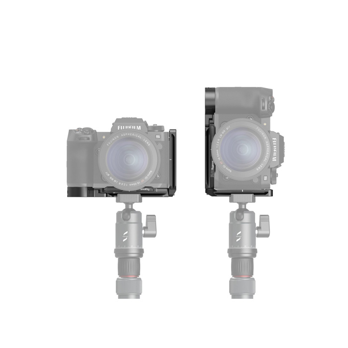 SmallRig L-Bracket for FUJIFILM X-H2 and X-H2S 3928 is designed for a quick switch between horizontal and vertical shooting while improving grip experience. Securing the camera via a 1/4"-20 screw and an anti-twist locating pin at the bottom, the L bracket comes with protective cushions that prevent scratches and a hinge arm at the battery door that fits the camera well and improves the grip experience of the little finger. Its Arca-Swiss baseplate and side plate each have a center mark. In the baseplate, there are 1/4 "-20 threaded holes for Manfrotto Quick Release Plate 1280, Side Handle 2093, etc. An Arca-Swiss mounting point on the bottom for Arca-Swiss tripod and DJI RS 2 / RSC 2 and a built-in strap hole for Hand Strap 3848 and 2456. On the top of the side plate, there are two 1/4 "-20 threaded holes which are available to use with Cold Shoe BUC2736 for attaching microphones, light, and more devices. The stretchable side plate gives access to the HDMI cable and can be adjusted back and forth for a 180° opening of the LCD screen. Its gap design means you can rotate the screen about 60°. In addition, an accessible flat-head screwdriver and a hex spanner are included for quick assembly and disassembly.