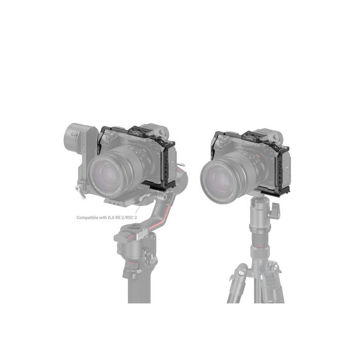 Designed to protect camera and provide varied mounting points. It locks camera via one 1/4''-20 screw, one locating pin at the bottom and one side lock adapter on the left, and features rubber cushions to prevent scratches. The cage comes with protective cushions that prevent scratches and a hinge arm at the battery door that perfectly fits the camera and improves grip experience of the little finger. The cage gives full access to ports, dial, LCD screen, and battery door. It comes with 1/4 "-20 and 3/8"-16 threaded holes for Side Handle 2093 & 3814, Top Handle 3765, Cable Clamp 1693, Magic Arm 2070 & 2115, Monitor Mount 2904 & 2903. Manfrotto Quick Release Plate 1280 & 2458, etc. One 1/4 "-20 locating hole at the side that supports Single Rod Clamp 3276 for follow focus 3010, cold shoe mounts for microphones, LED lights, etc. NATO rails for Side Handle 3260 & 3813 and Magic Arm 2116, strap holes for Hand Strap 3848 & 2456. Its bottom Arca-Swiss quick release plate supports Arca-Swiss tripod and DJI RS 2 / RSC 2 for quick switch among stabilizer, handheld, and tripod shootings. Besides, a built-in flat-head screwdriver is available to facilitate assembly and disassembly of the cage.