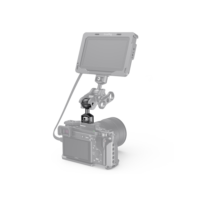 SmallRig Ballhead 2114 is a ballhead with Arri locating pins on the one end. It is used exclusively used to attach a camera cage or monitor cage with Arri locating points. It prevents magic arm from twisting, thus it increases the stability and security of the magic arm. It comes with a thumbscrew to lock the cage tight manually, or even tighter with the use of the hex spanner. The rubber cushion on the ballhead could increase the friction between ballhead and ballhead clamp, thus ensuring firm locking. Also, it could replace the ballhead on either end of Magic Arm 2070/2071 for use.