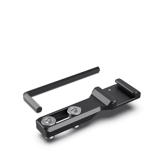 It secures to cages and plates with two captive 1/4”-20 screws to prevent it from losing. The cold shoe features a stopper edge in one end to prevent your accessory from suddenly sliding out.