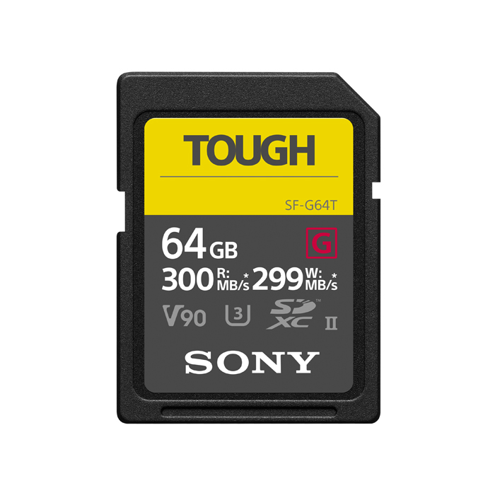Sony SF-G kort serien med TOUGH-specifikation er designet til at være pålidelige. Kortet er støbt i ét stykke med særdeles hårde materialer og er 18 gange mere modstandsdygtig mod bøjning end standard SD-kort. SF-G kortene fra Sony er modstandsdygtig over for stød ved fald fra op til 5 meter og har det højeste niveau af støv- og vandtæthed (IP68).