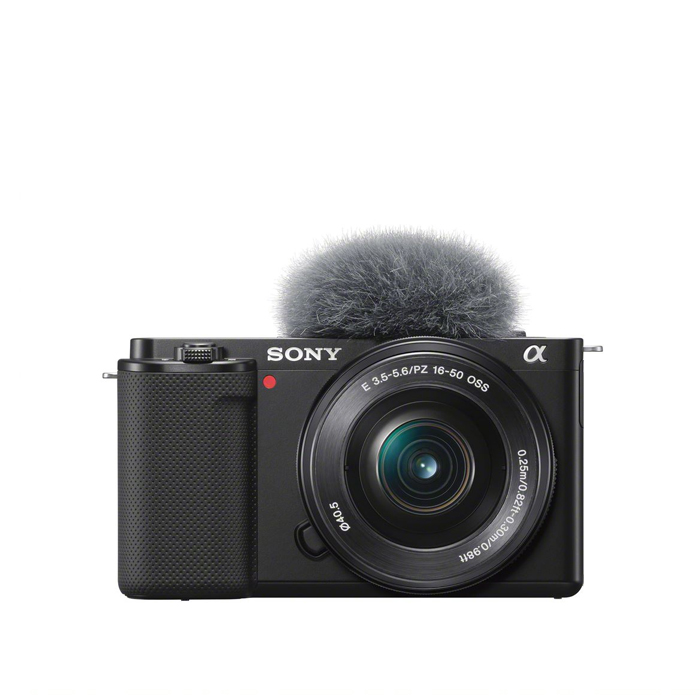 Sony ZV-E10 leveres med en vindhætte, der gør det nemt at optage lyd udendørs. Den medfølgende vindskærm kan nemt fastgøres til Multi Interface Shoe for at reducere støj under blæsende forhold.